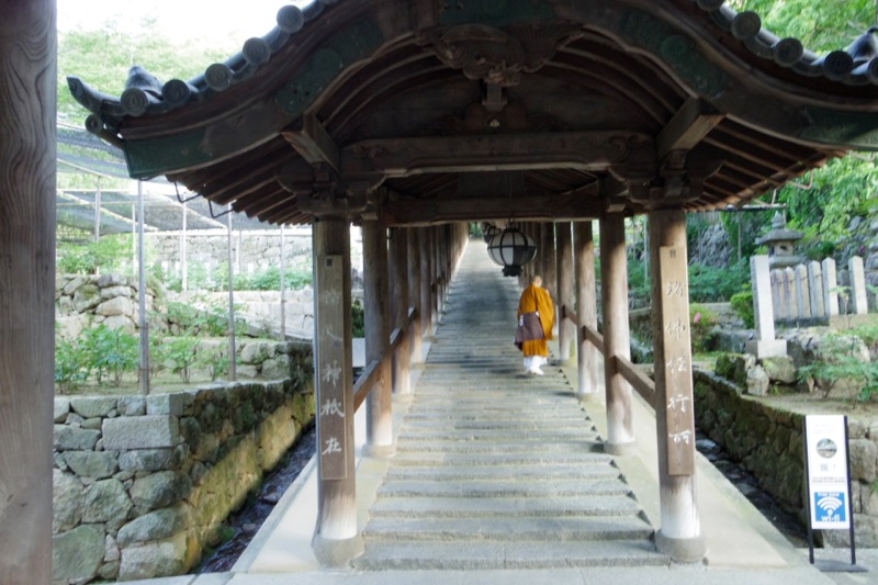 奈良・長谷寺といったらこの有名な登廊でしょう。仁王門から本堂まで、風情ある緩やかな階段が続きます。脇には牡丹の花がたくさん。シーズン時はとてもきれいだと思いますが、きっと多くの参拝客で混雑すると思うので、あえてオフシーズンに静かに歩くのもいいと思います。牡丹の時期が終わった直後の新緑の早朝がおすすめです。朝の勤行に参加できます。