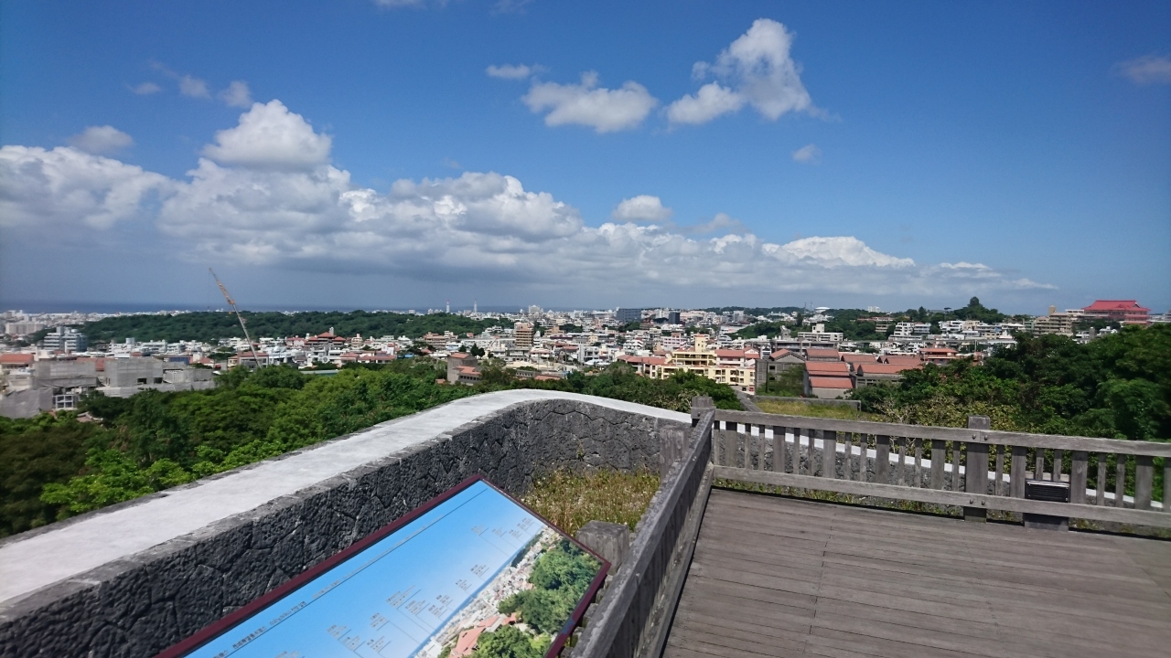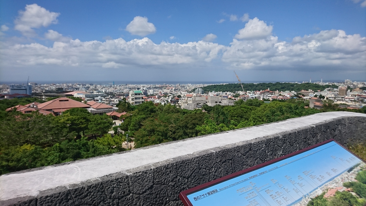 首里城公園の有料区域内に入るときに西のアザナという展望台に寄りました。そこからは、那覇市の風景が果てしなく広がっていました。遮る建物が無かったのでその風景に圧倒されました。また、那覇市だけでなく、海も見渡すことができました。ここに寄った甲斐がありました。
