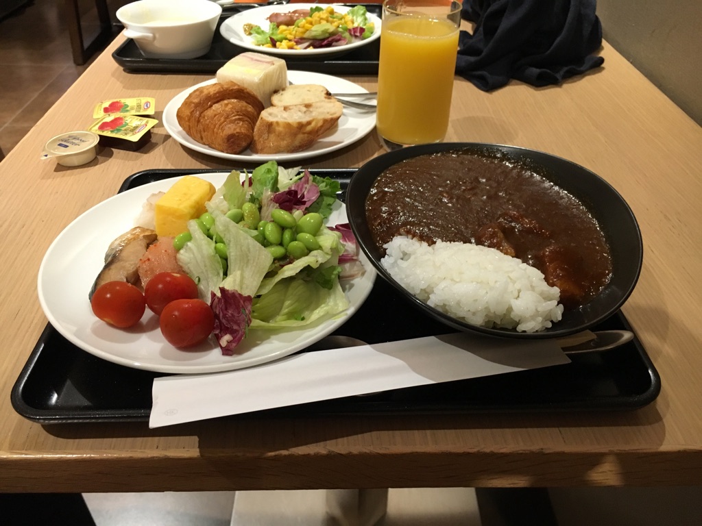 朝方はあまり食事メニューは豊富ではありません。が、あの名物カレーはたっぷりと堪能できます。機内食は食べずに寝ようと思っていたので、しっかりと(カレーを)いただきました。