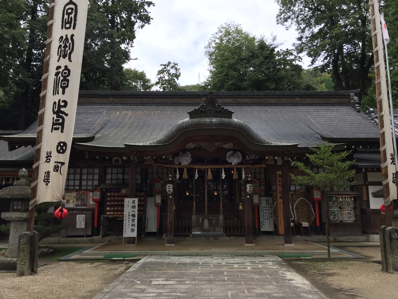 読んで字のごとく、足を助ける神様として足、旅、交通の守護神として信仰されています。拝殿向かって右手には、大きなわらじがありました。