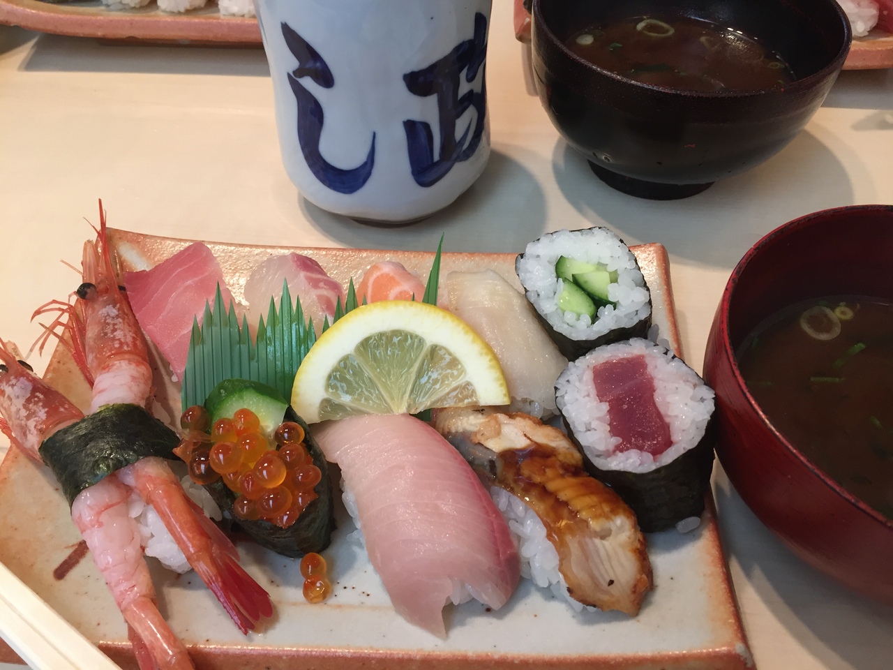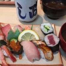 500円のにぎりのランチが人気のようですが、売り切れでしたので、1000円(税別)のにぎりのランチを注文しました。赤だし付きで美味しかったです。