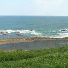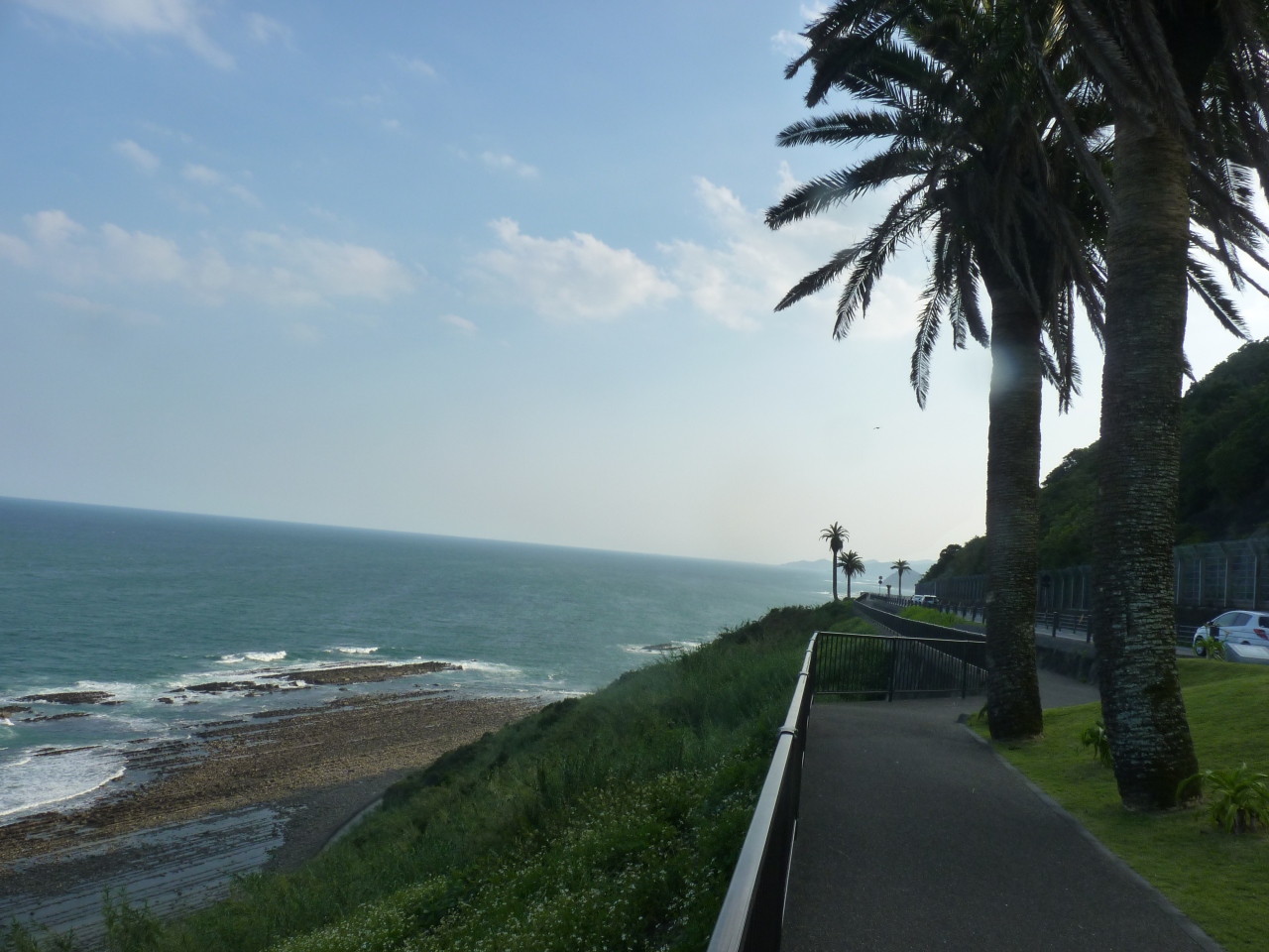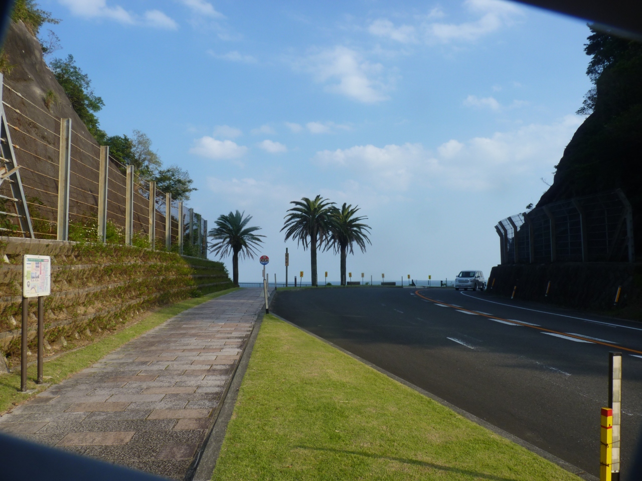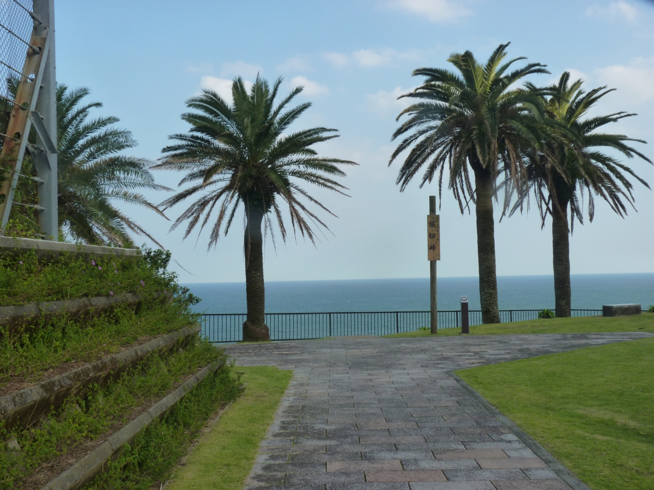 国道220号線を宮崎市内から約20分くらい行くと山の麓の上り坂になる。ここを突き当たると、突然太平洋が飛び込んでくる。真っ青な海とコバルトブルーの空が一帯に見え感動できるポイントである。さすが10月末になると観光客も無く風もひとしお強く吹く季節になっている。