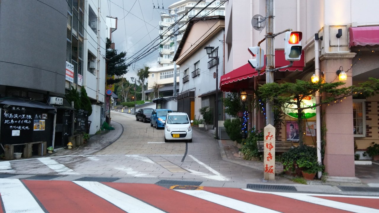 いでゆ坂を上りきると、そこからみゆき坂に変わります。みゆき坂沿いにはお土産やさん、神社、だんご汁やさん、鬼山地獄などがあります。坂道なので足の不自由な方には負担ですが、不自由でない方にはよい散歩道です。