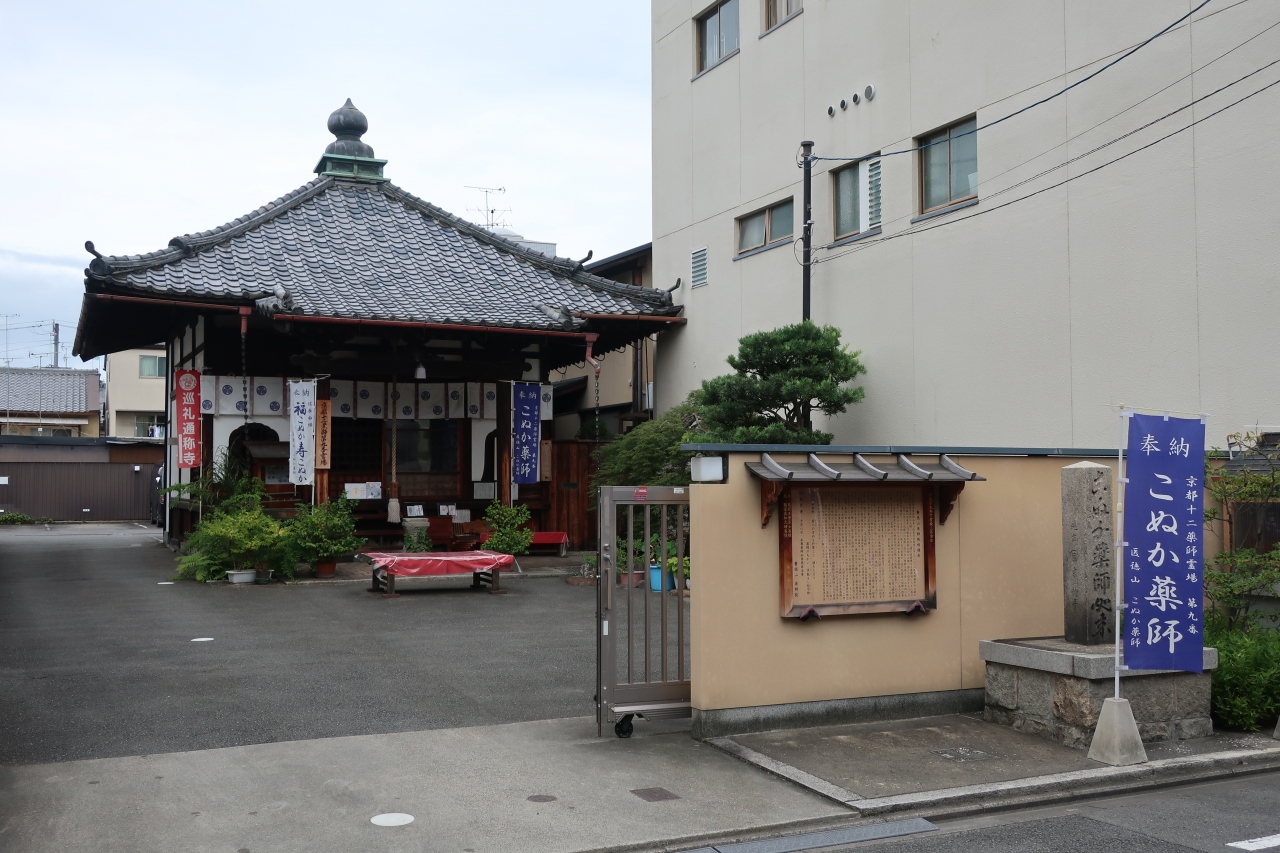 夷川通り、釜座通りを下った西側に変わった名前のお寺、来ぬか薬師があります。正式名称は薬師院。古いお寺で本尊の薬師如来が住職の枕元に立ち、病の流行を取り除くのに「来ぬか、来ぬか」と伝えた、と言う古事からこの名で呼ばれるようになったとか。信長の勧請もあった薬師ですが、蛤御門の変で焼失、現在はコンクリの上に小さな本堂があるだけ。行った時も他には誰も居ませんでした。