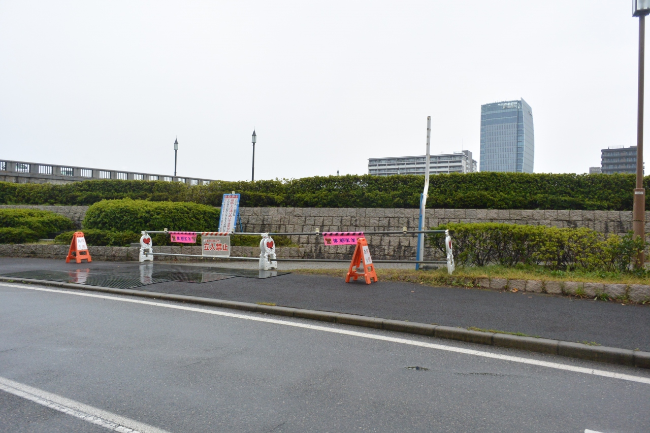 信濃川沿いにある遊歩道ですが、私が行ったのは萬代橋上流のところでしたが、改修工事中で、道路から遊歩道に入るスロープにバリアが設置されていて、立ち入り禁止になっていました。工事は平成30年1月15日までとありました。ちなみにバリアの支柱が朱鷺の形になっていたのがかわいかったです。