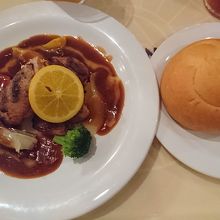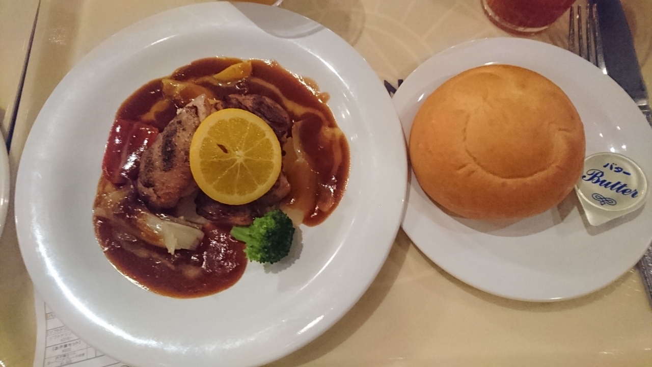 11/1のアフター6で。ハロウィン最終日翌日だったのでパークもレストランもガラガラ。店内右側はオーダーする場所も座席も解放していなかったくらい。セットメニューはサラダ、スープ、デザートから2品選び、メインを5種類から1品選ぶ。パンかライスとドリンク付。セットメニューは量が多めかも。単品でも注文可。