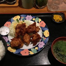 いろいろな飲食店がひしめきあう船場センタービルの地下ですが、改札前にあるこのお店は安い。しかも、量があって安いのでびっくりしました。特にからあげはあっさりしていて附属の塩こしょうをつけて食べるのですが、ものすごくジューシーで美味しかったです。