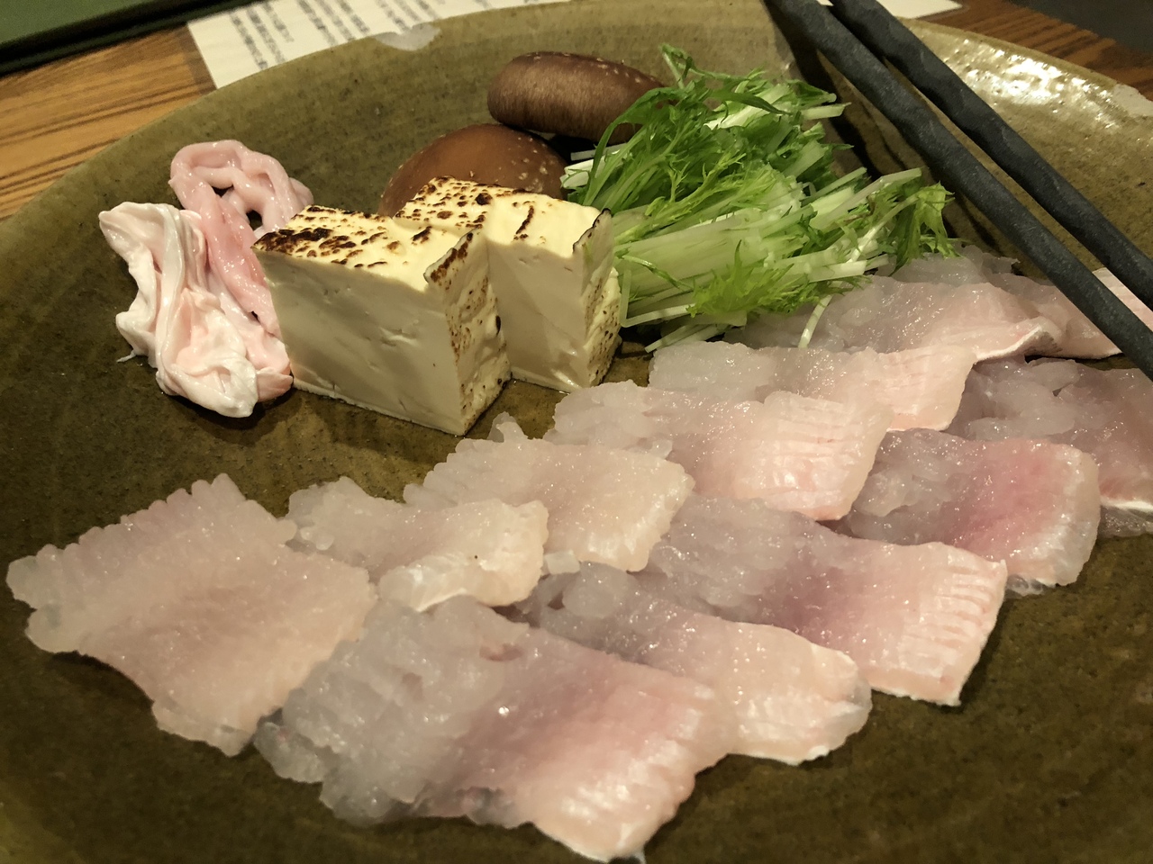 と言えば夏だと思ってる人も多いでしょうが、土瓶蒸しの時期である秋の方が脂がのってうまいんです。ここ「こゞちよ」さんも秋になると値段が下がってお手頃価格になります。南蛮漬け、刺身、鱧鍋、落とし、お寿司2種、天ぷら、雑炊、デザートと満足の行くものでした。場所が海辺から山手に変わっても味は変わらずでした。