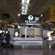 3階の出発ロビーの中央にあるので、分からないことはここで聞けて便利です。海外からの旅行者も多くなってきているので、案内所があると旅行者も安心ですね。