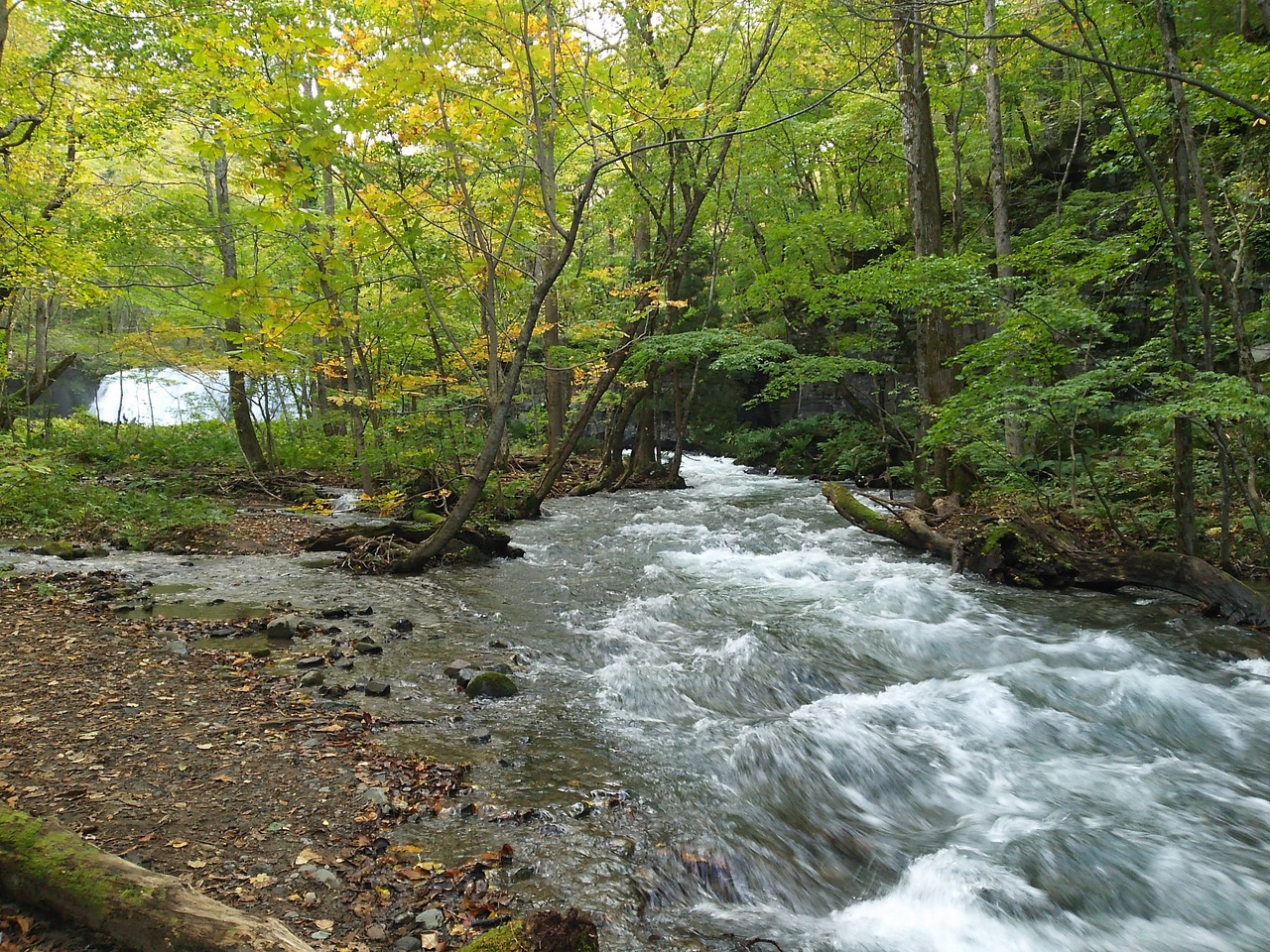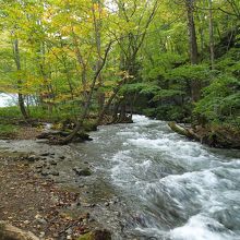 紅葉の時期は混雑することで有名な場所ですが、平日だったのでそれほどではありませんでした。それでも駐車スペースとかは二重駐車するバスなどがジャマで渋滞が発生しています。渓流自体は他の名所渓流と大差がないです。なんでこんなに人が集まるかが不思議。