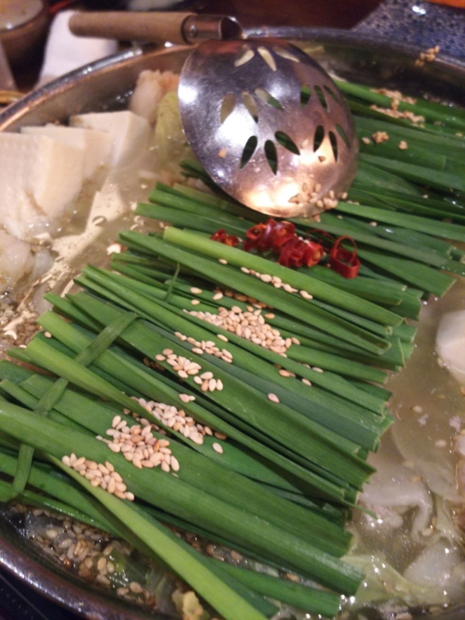 博多にはたくさんのもつ鍋のお店がありますが、その中でもこのお店は、人気店のひとつのようで、店内はかなり混雑していました。すりおろしたニンニクたっぷりの味噌味のもつ鍋も美味しかったですが、ポン酢で食べる水炊きももつ鍋なのにさっぱりしていて美味しかったです。