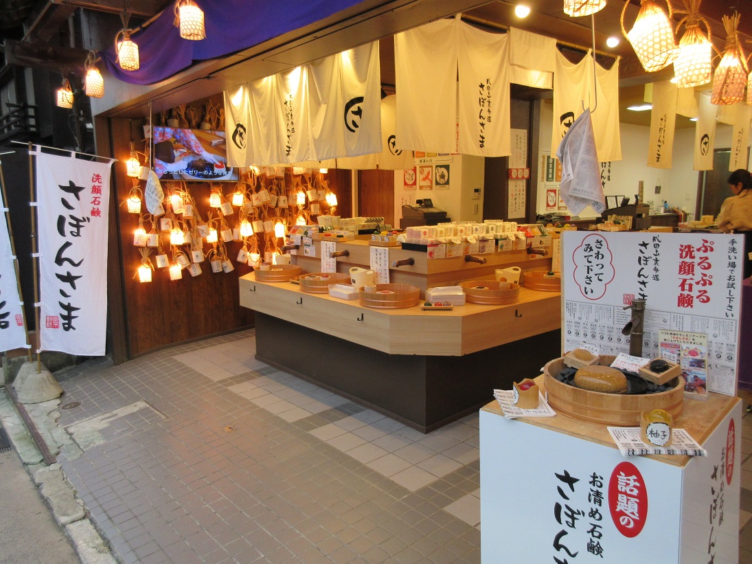 成田山新勝寺の参道にあるユニークなお店の一つです。「さぼんさま」とのネーミングからなにかご利益がありそうで、お清めの設計は木のたらいがあって水を使ってテスターとなっている石鹸を実際に試してみることが出来ました。そうしたたらいが店内にいくつか置かれていて楽しめました。