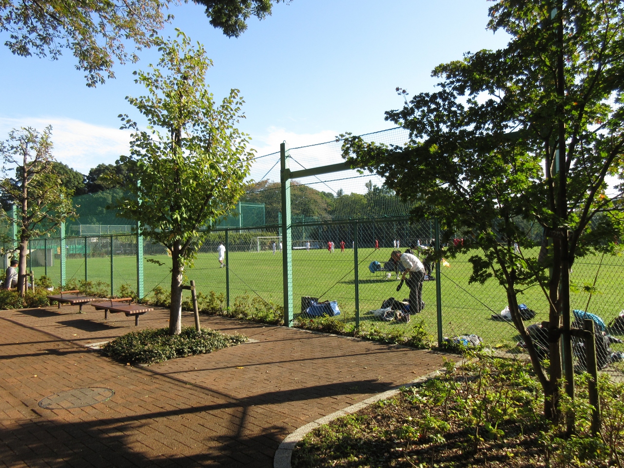 肥後細川庭園のボランティアさんの案内で訪れました。現在はサッカーコートや芝の広場がある運動公園になっていますが、昔は細川家の下屋敷だったところで、細川家の方が住む洋館と和館が建っていたそうです。関東大震災で崩れてしまい、その後は運動公園として使用されているとのことでした。痕跡は何も残っていませんでしたが、ボランティアの方と回ると、いろいろなことがわかり楽しい散策になります