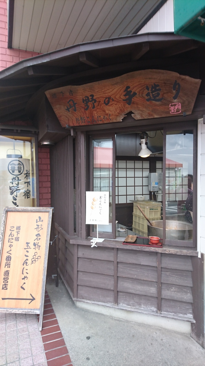 上山市の楢下にある丹野こんにゃく店の出店。山形県観光物産会館(ぐっと山形)の入口にあります。