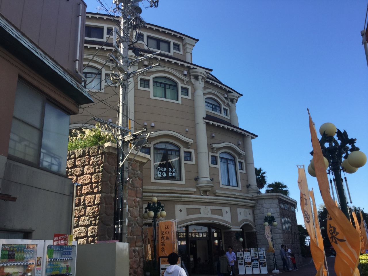 江の島にわたってすぐ、洋館の目立つ建物があります。そこが江の島アイランドスパです。3階は温泉エリアになっており、1階と2階は、水着を着て入るエリアになっています、江の島をながめながらの贅沢な時間となりました。