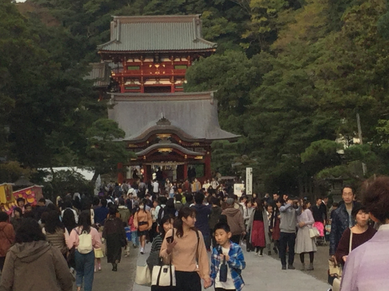 鎌倉の大仏に次ぎ、鶴岡八幡宮は観光名所の1つです。たくさんの人でにぎわっていました。ここで、結婚式を挙げている人もいました。中の宝物殿には入館料を払えば入ることができます。それ以外の境内は無料でした。