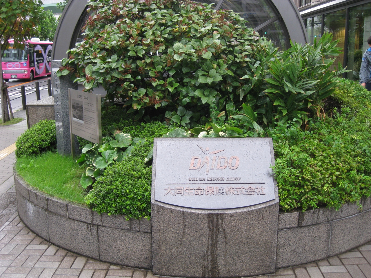 四ツ橋筋肥後橋の南詰に建つ江戸時代大阪の豪商加島屋にゆかりのある大同生命大阪本社ビル。土佐堀川を挟んで中之島のフェスティバルホールの対面です。ビル敷地には創業家加島本家の碑がひっそりと建っていて先祖を敬う心が表れています。この周辺は江戸時代藩の蔵屋敷があった場所で交通の便も良く経済の中心地であったことが偲ばれます。