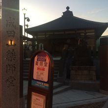 成田山表参道の平地から坂道になる場所にあり道の分岐でもありバス停もあるので人が多かったですがあまり立ち寄る人はいませんでした。敷地は狭いですが綺麗に整備され、手を洗う水場の水が出る部分が龍の姿で人が来ると自動に水が出るようになっていました。入ってすぐに小さな6体の石仏が可愛らしかったです。