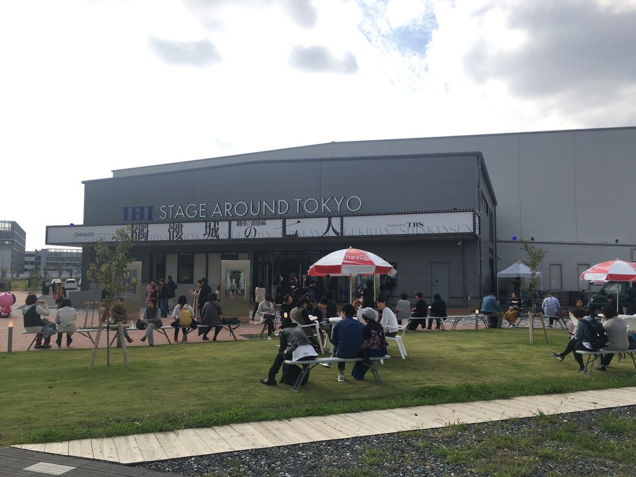 市場前駅にはコンビニ・売店等もありません、駅から劇場までの道にもなにもありませんので飲食物等買われる方は事前購入がおススメです。劇場まで行けば併設するカフェと、劇場前に軽食販売のワゴンが1台来ていました。劇場前にベンチがたくさん設置されていますが、屋根はありません。