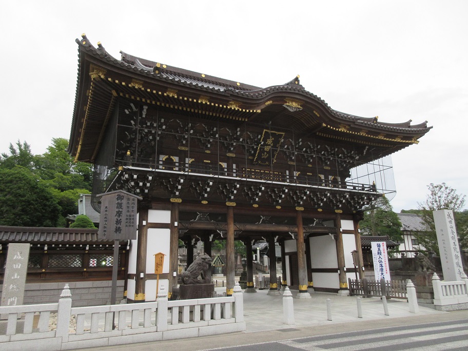 成田駅から成田山新勝寺へ向かう表参道をのんびり15分ほどかけて歩いてきて、坂を下った左側にこの新勝寺の総門が現れました。大きな二層になった重厚感ある門で、お寺の格式の高さを窺い知ることができました。拝観料なしで成田山新勝寺は境内に入ることが出来ます。