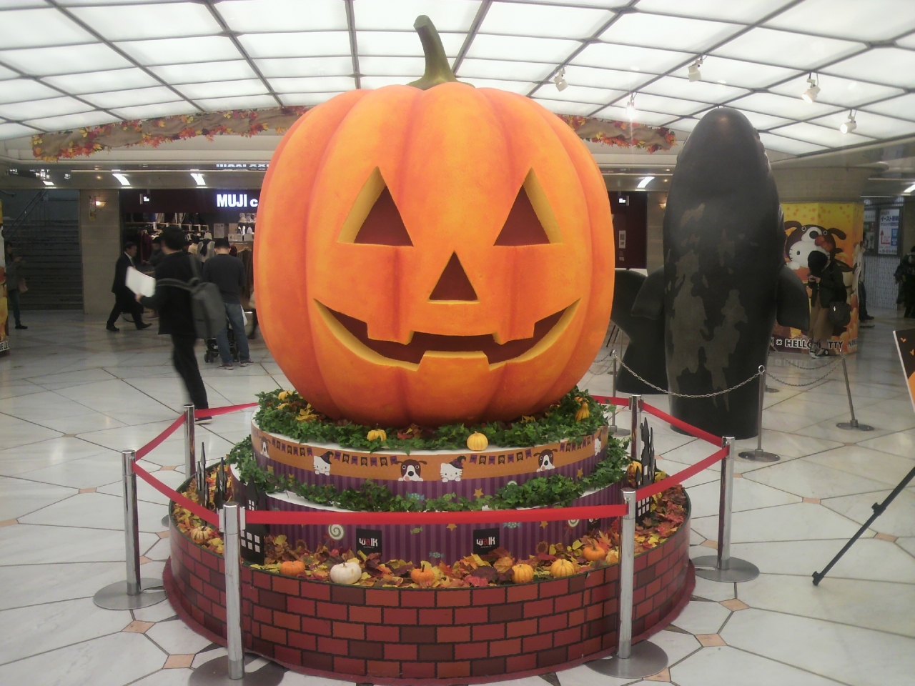 様々なショップや飲食店があり、ビックカメラがある地上へ上がる前の広場には、季節ごとにデコレーションがされており、秋はハロウィーンのかぼちゃが置かれており、写真を撮ることができました。