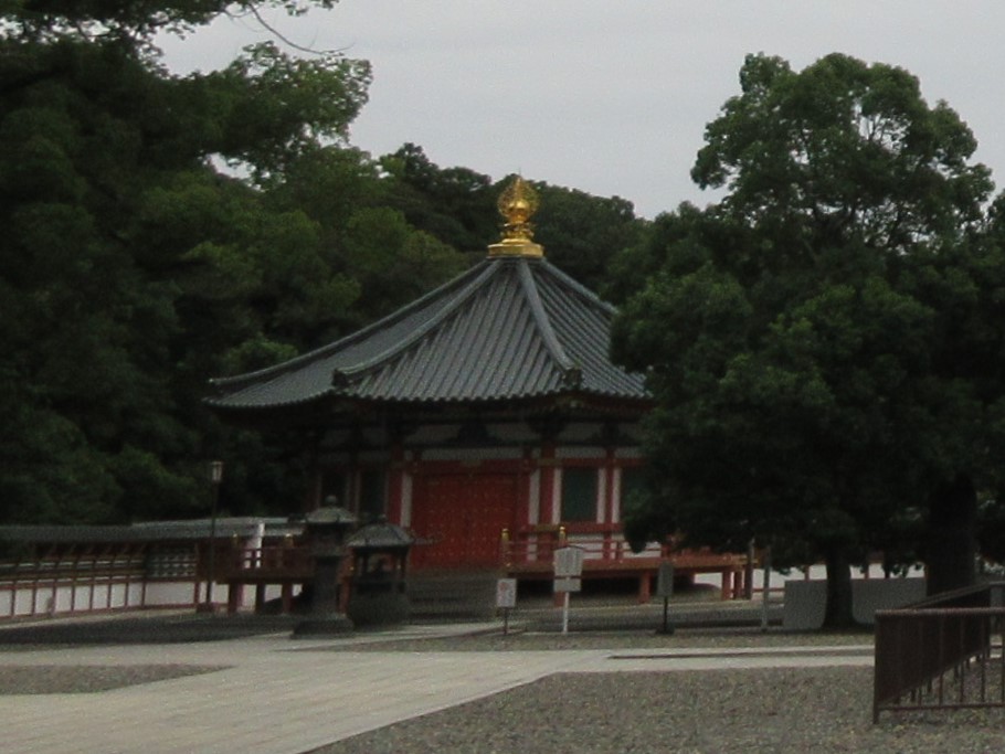 成田山新勝寺の境内に入り、三重塔のそばに法隆寺の夢殿に良く似ているお堂がありました。比較的新しく建てられたもののようですが、上手に隣接する三重塔と同じような色使いにして景観を損なわないよう配慮されていました。建物自体の古びた感じはありませんでした。