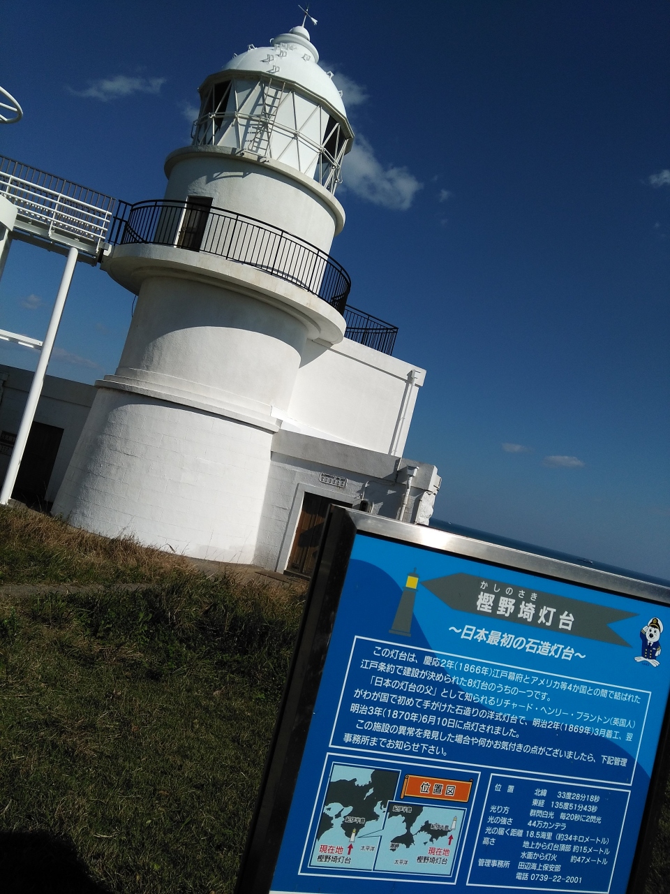樫野崎埼灯台は串本から車で15分位。くしもと大橋で島と繋がっています。小さい島ながらもも絶景のドライブを楽しめます。トルコ記念館の駐車場に止めて灯台の上から見る海の景色はまさに絶景です。10月からは伊勢エビが食べられる食堂があるようです。本州最南端はぜひ一度行ってみる価値ありです。