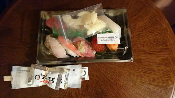 ホテルが近かったのでテイクアウト。お持ち帰りでも新鮮なままお寿司を食べられました。