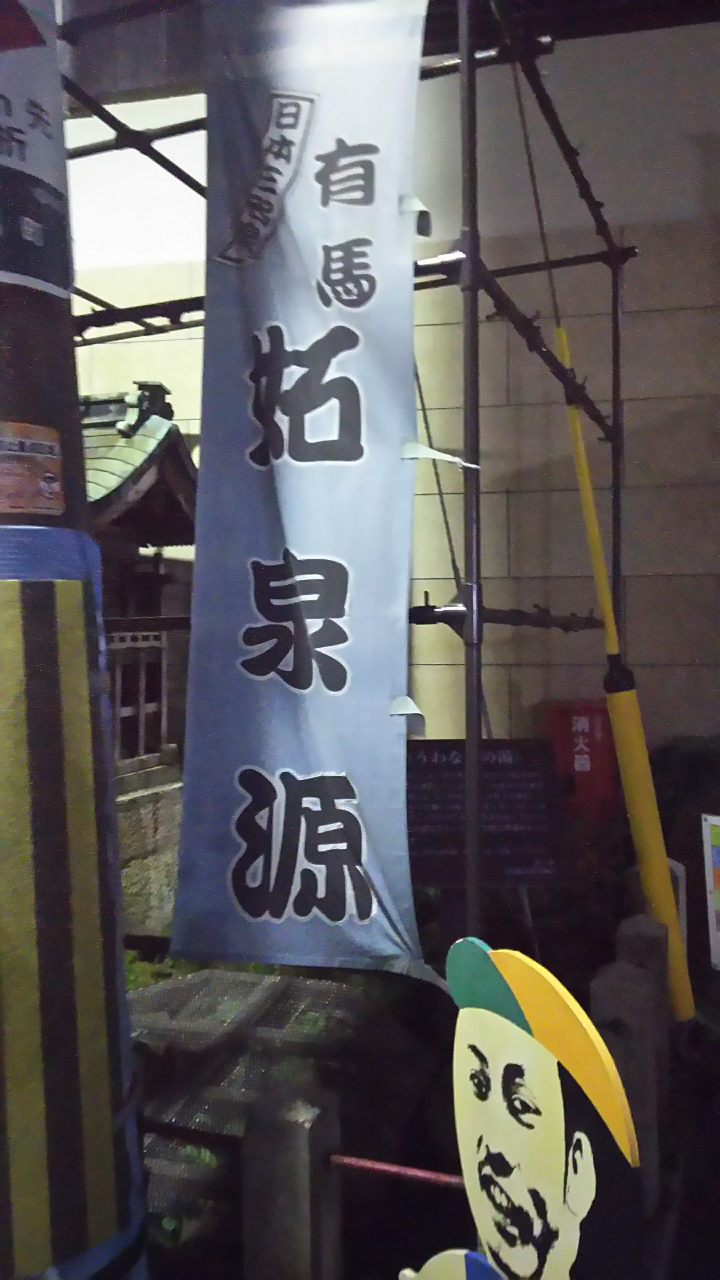 有馬温泉に数ある泉源の一つです。有馬町内にあるバス停から金の湯の路地を上がってきてすぐの右手に泉源を見ることができます。夜に立ち寄ったので気温も下がってきていたので湯けむりが立っていました。鉄分の強いにおいが独特ですね。
