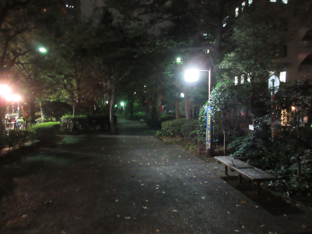人形町から浜町界隈を散策していた際、甘酒横丁に交差する緑豊かな通りがあり、それが浜町緑道です。道幅は狭いですが、歌舞伎にゆかりの銅像があったり意外と楽しめました。夜は照明が暗いし酔っ払いも多いので、女性の一人歩きはお勧めできません。