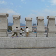 ぱっと見にはモアイ像のような、子供の遊具のような、ブロックのように見えます。実際子供がモニュメントに上って遊んでいました。
