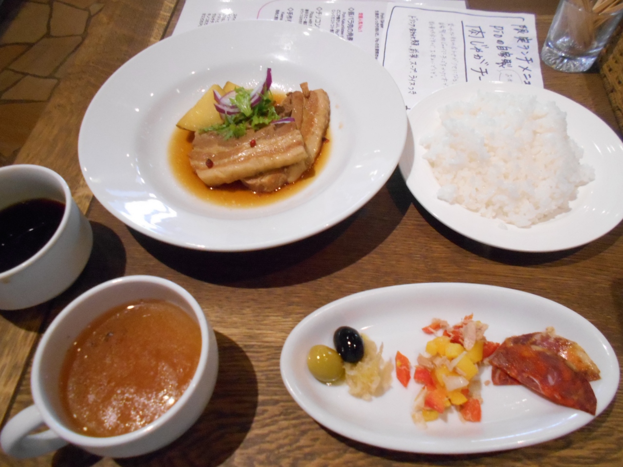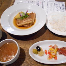 最初に前菜とスープが運ばれてきて、そのあと角煮が出てきました。