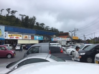 北部名護市から南へ国道58号の許田(キョウダ)地区にある全国ランク5位にも輝いた道の駅。沖縄高速道のIC終点にも近く立地が最高なので常に賑わっているそうです。