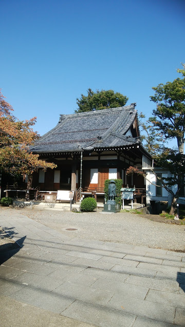 真宗大谷派の寺院で、宗祖は親鸞聖人です。本堂の前には親鸞聖人のブロンズ像が設置されています。アクセスは千歳烏山駅から寺町通りを北上して中央自動車道を過ぎるとすぐにあります。山門は道路に面してあって、石柱と鉄扉の山門でこの界隈では標準的な仕様のものだと思います。山門を入ると正面左手に本堂があって、瓦で葺かれた屋根が秋晴れの太陽に照らされ輝いていました。決して大きな本堂ではないですし、境内も広くないですが、きれいに管理整備させれているのがよくわかる、手入れの行き届いた寺院です。