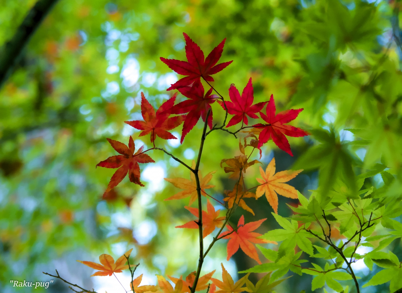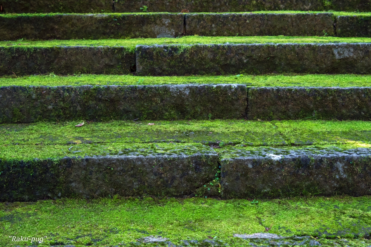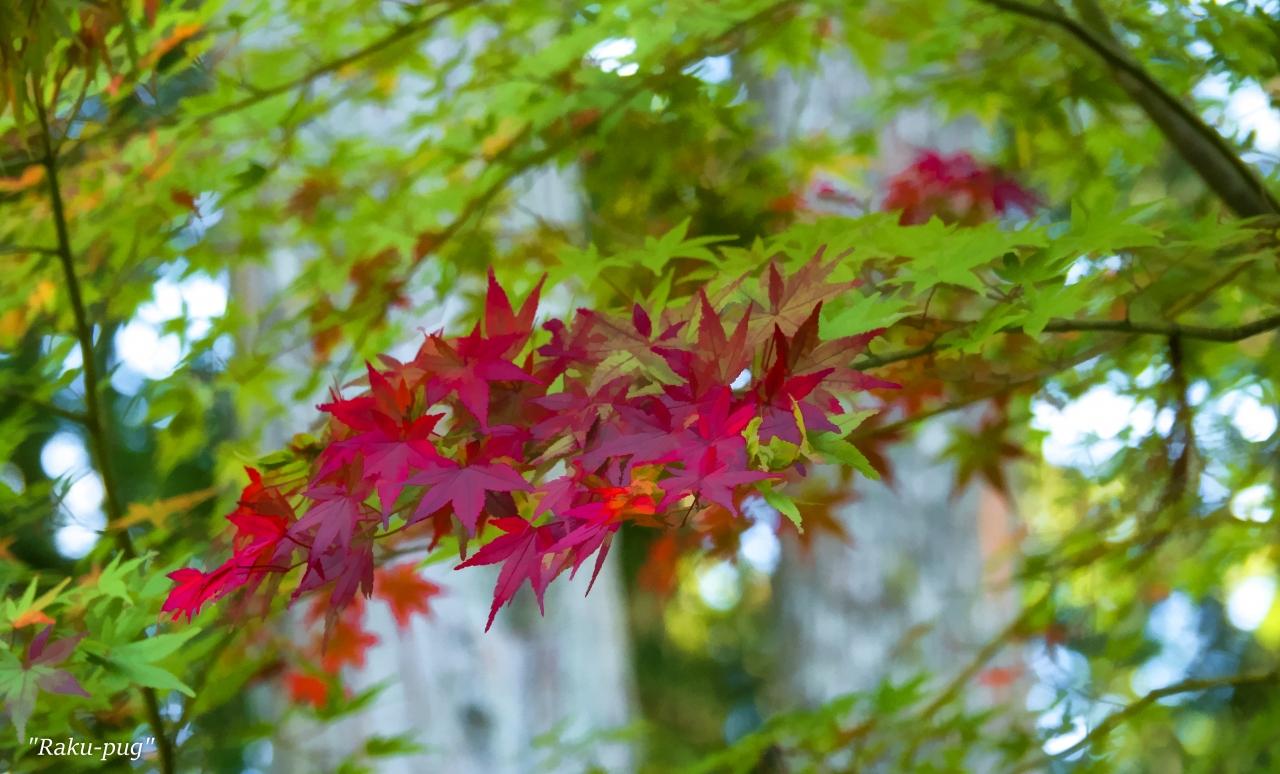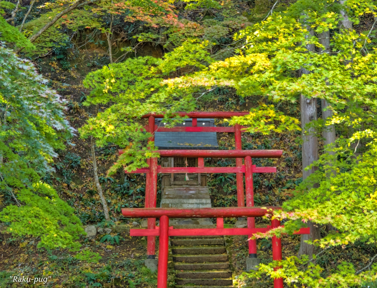 苔むした石段の先に広がる境内は、モミジやカエデの「赤」と