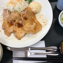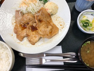 地元特産の豚肉のしょうがやきを頼んだのですが、これでも他メニューよりも軽めという感じでした。