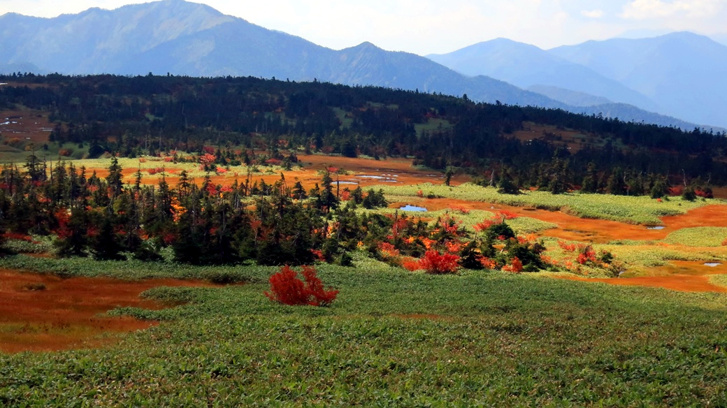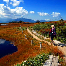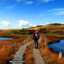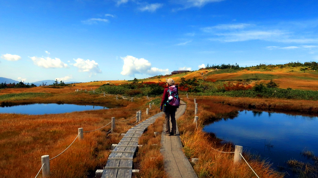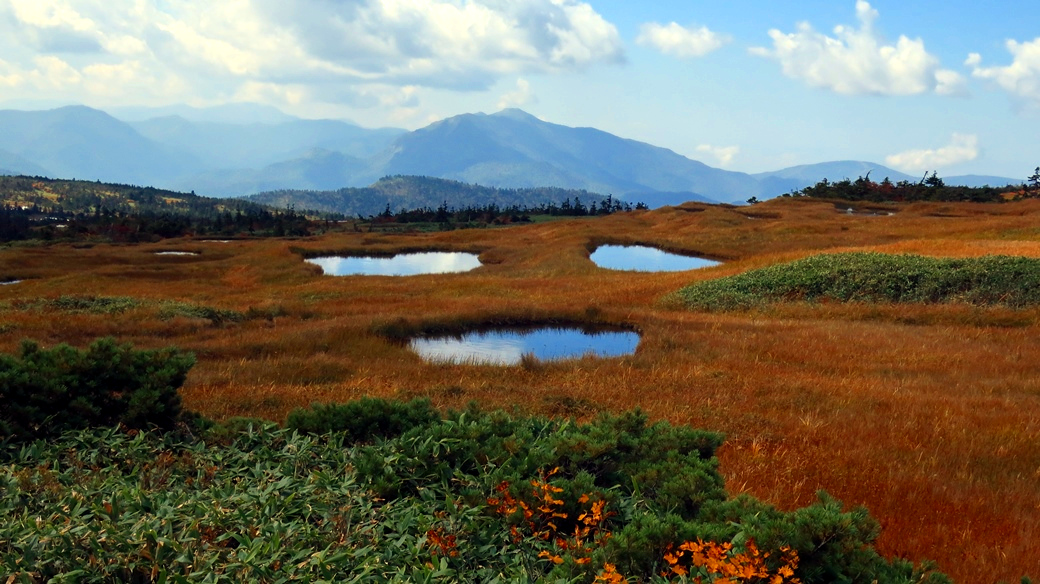 山頂にある湿原としては日本最大の面積を誇る池塘(小さな池)の大平原が山頂には広がっています。