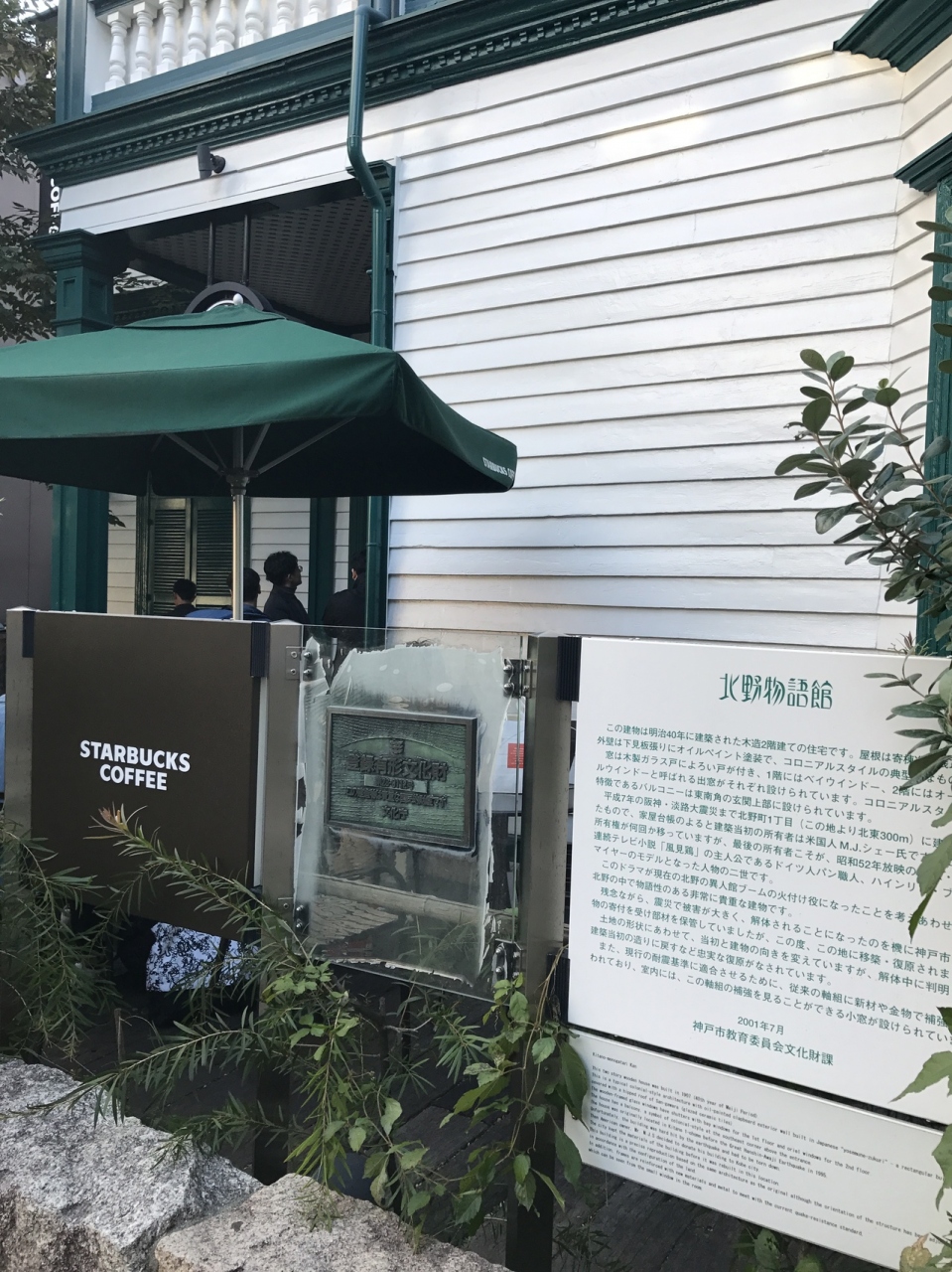 神戸は北野エリアにあるスターバックスは1907年に建築された木造二階建ての住宅で建築当初は米国人が所有していました。1995年の阪神淡路大震災の被害を受けた後取り壊れる予定でしたが、平成13年に再建しスターバックスが営業しています。