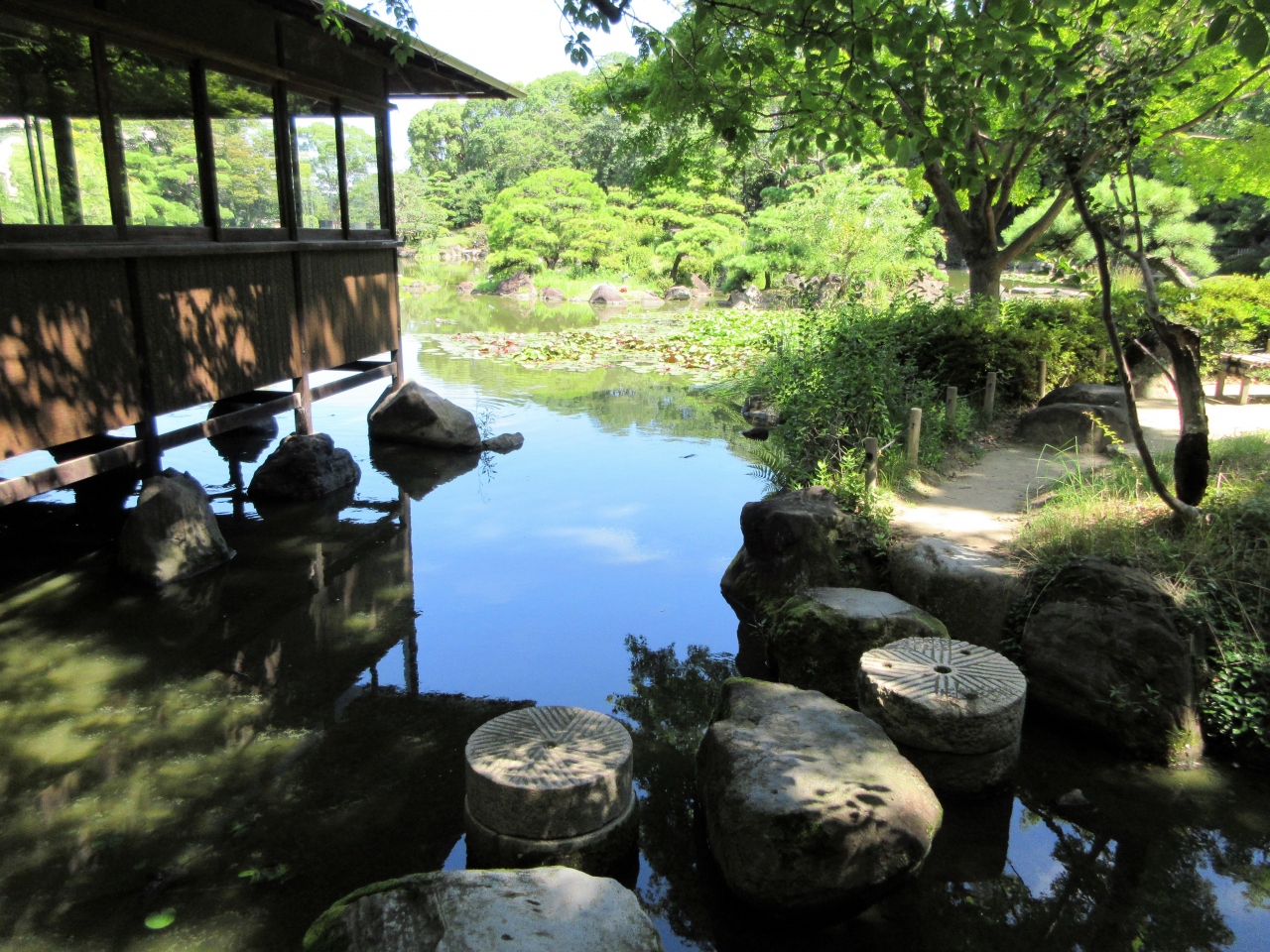 途中で四阿があり、中から池の睡蓮を眺めたりしました。