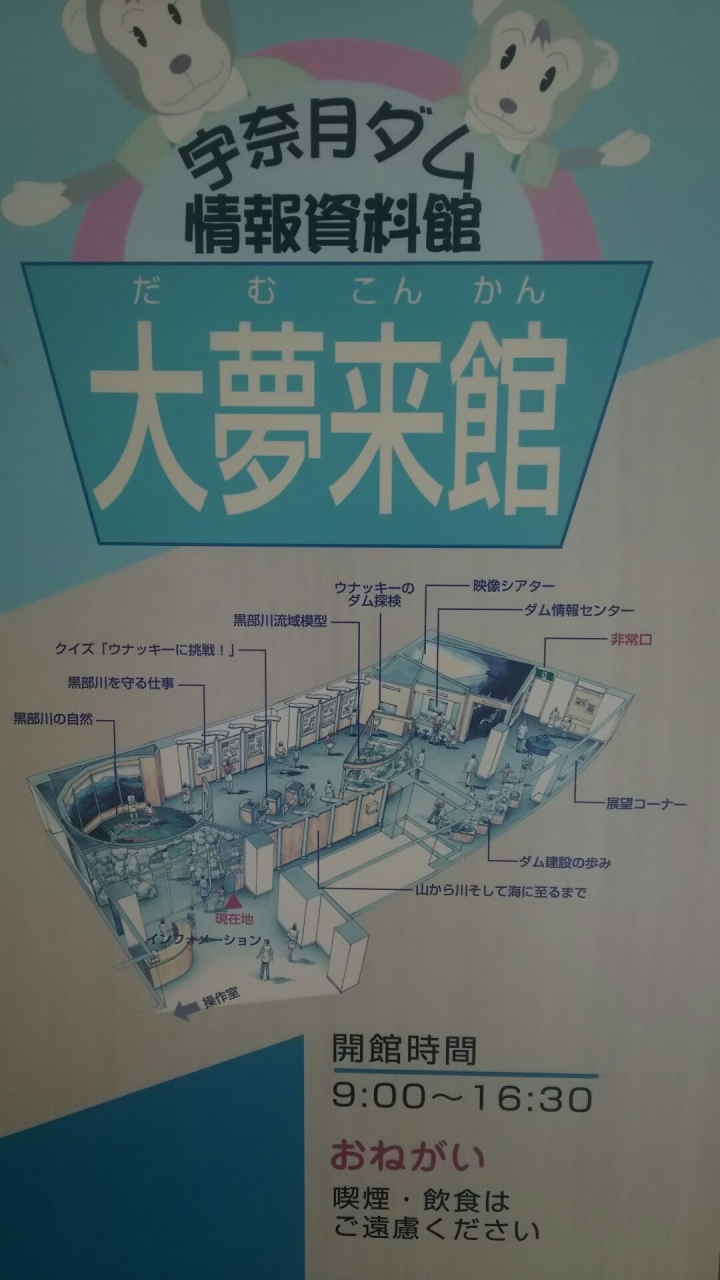 宇奈月ダムの事務所の2階が無料の展示室になっていて、無料で見学出来ます。シアターがあったり、音声案内で楽しく学べます。その部屋とは別に、ダムの操作室もガラス越しに見学出来ます。そちらにも駐車場がありますが、道路の反対側の駐車場からは宇奈月湖の眺めが良いです。