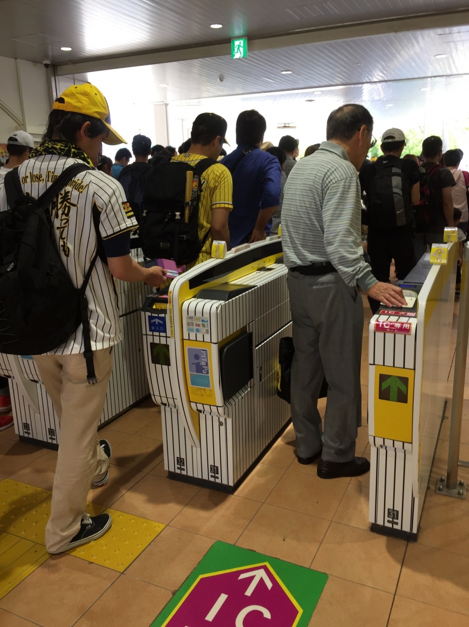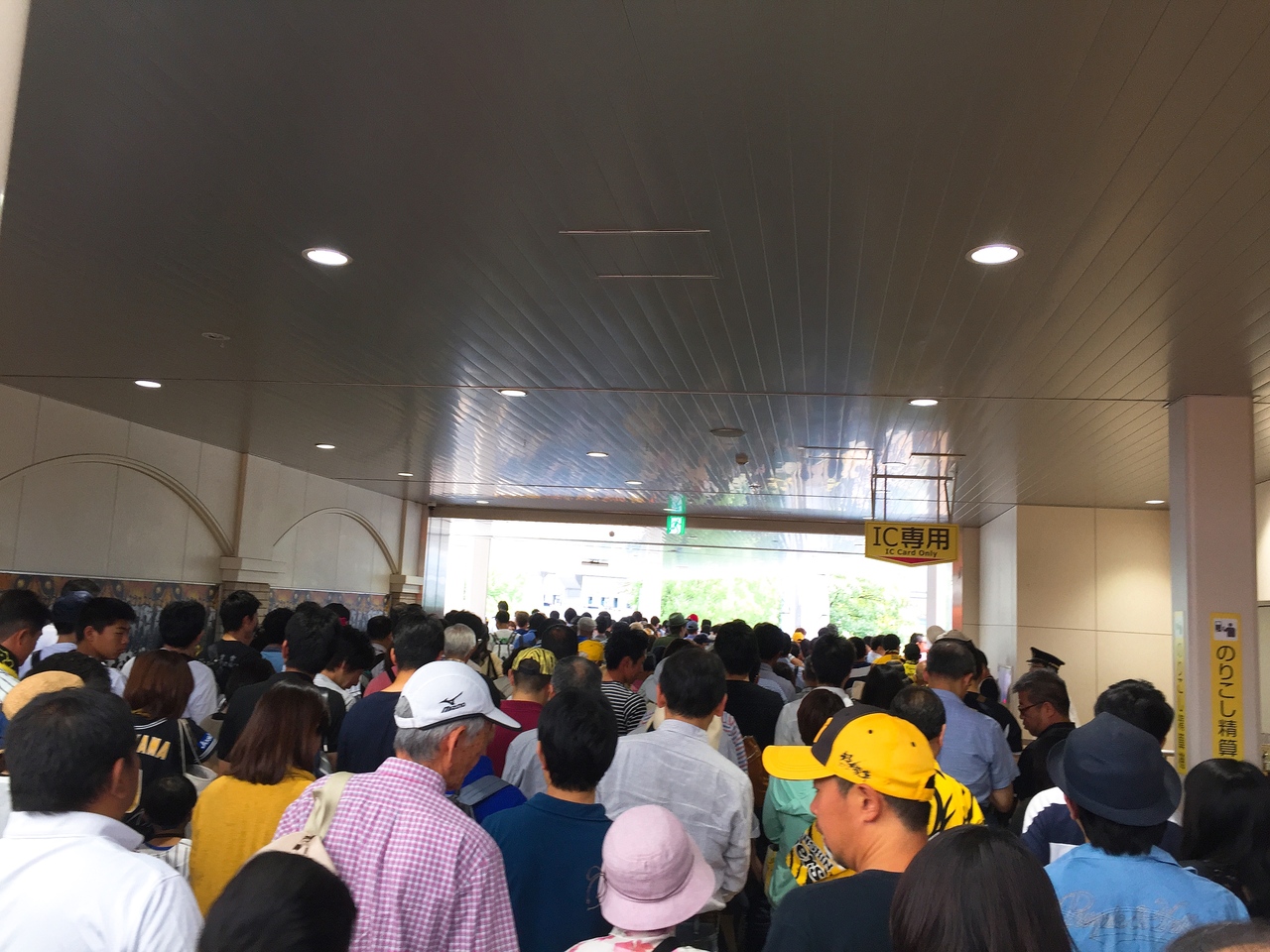 混雑緩和を、駅や阪神線サイドも心がけているようで、停車している電車の左右両方の扉を開放して、電車を突っ切って改札に向かってください!というアナウンスが流れた時はビックリしましたが、ラクラク移動できたので良かったです。