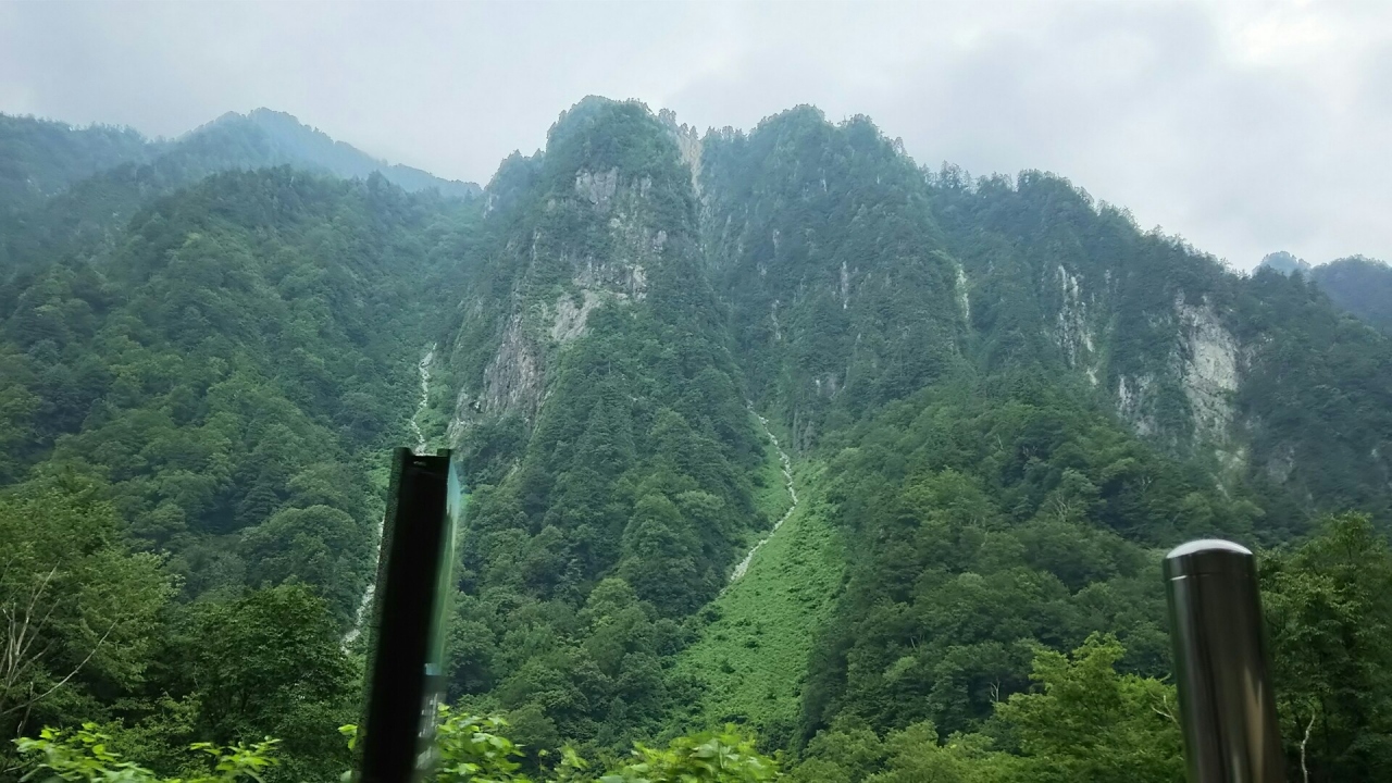 トロッコに乗って欅平に向かう途中で、車窓から見られます。直前にアナウンスもありますが、遠いのと、トロッコ脇に柵などがあるので、シャッターチャンスが難しいです。でも、遠目にもその険しさが良く分かります。写真より、実際に見る方が迫力があります。