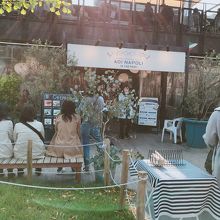 てんしばにあるレストランのひとつです。気分はピザだったので並んでみました。お天気のよい日曜だったので長蛇の列でした。窯焼きしたピザはとてもおいしかったです。2つのテイストをシェアしていただきました。大満足。