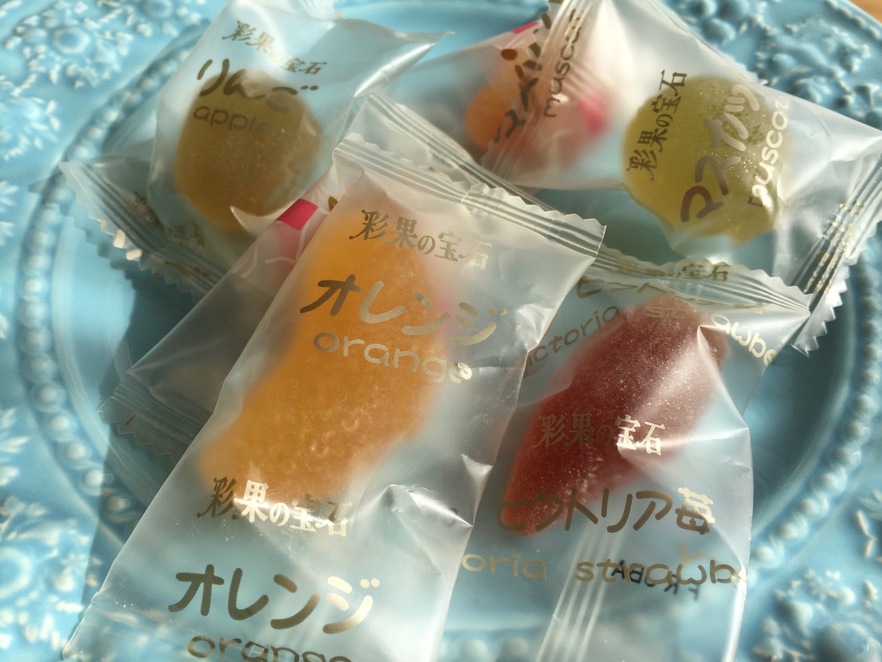 砂糖がまぶしてありますが、甘すぎず上品な味で、形もそれぞれの果物の形をかたどってあり、目でも楽しめます。