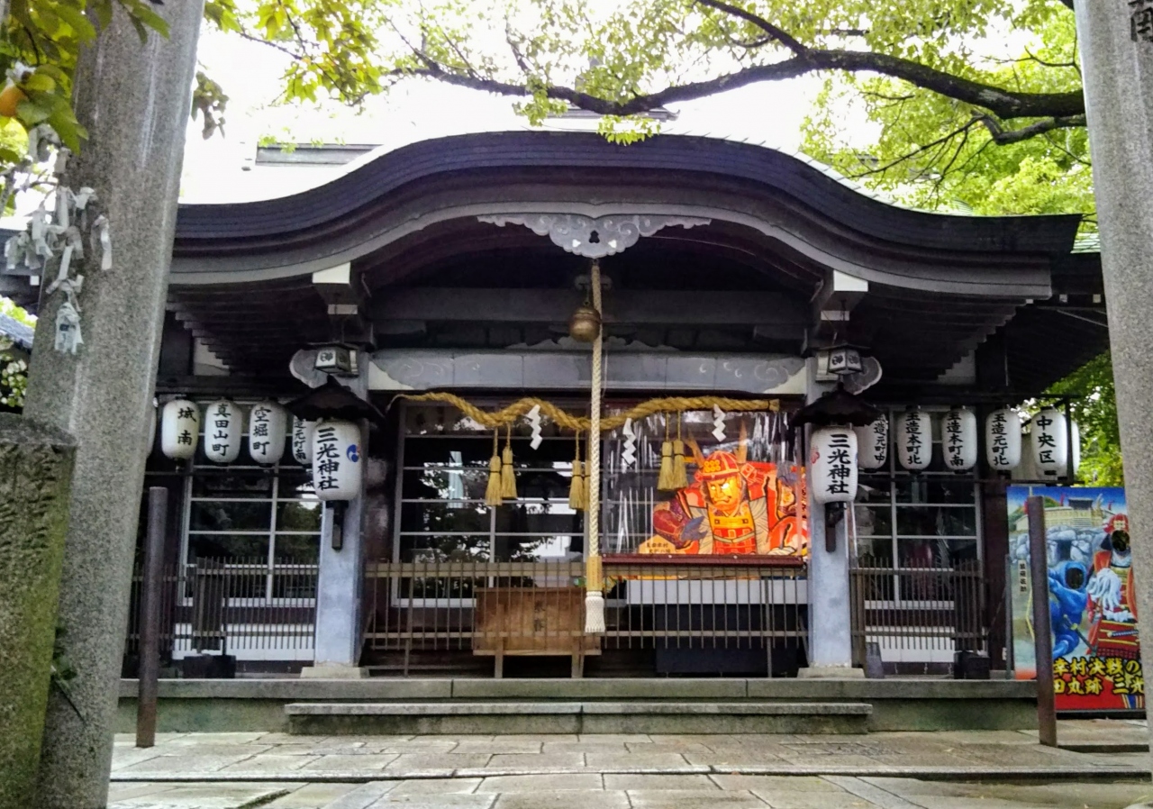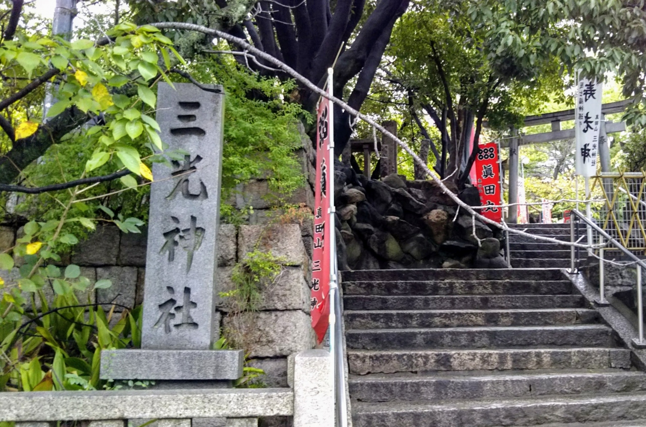 JR玉造駅から歩いて5分くらいのところにある「三光神社」へは、所々にある「真田幸村めぐルート」という案内板に助けられて行くことができました。
