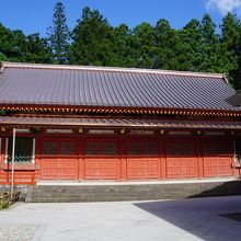 日光東照宮武徳殿は、日光東照宮宝物殿の隣りに建つ赤い大きな建物。