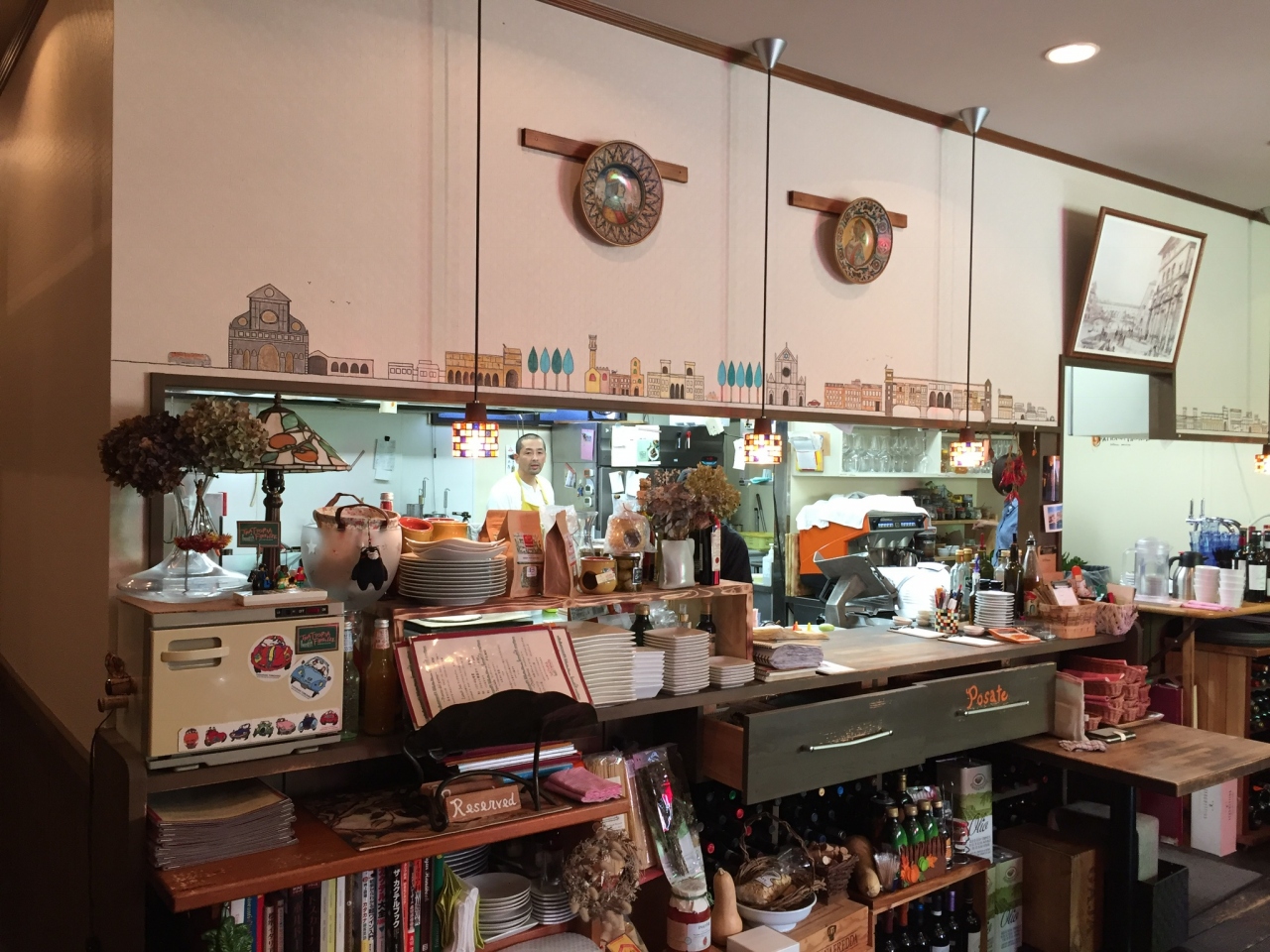 この日の「本日のランチ」はキャベツと生ハムのパスタ、サラダ、パン、ドルチェ、ドリンクで1,300円でした。ホットコーヒーのみ、お代わりできます。