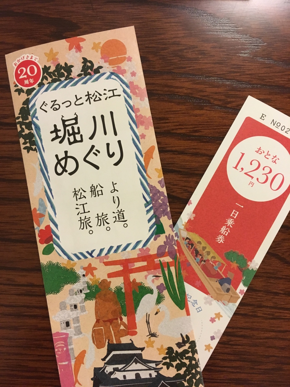 松江城のお濠を船で回ります。3箇所乗り場があり、乗り降り自由ですが、私は1周回りました。船頭さんがガイドをして下さいます。(自慢の喉も披露して下さいました!)橋の下をくぐる際に4箇所、橋と船が近いため、船の屋根を下ろしますが、そのときは床に横にならないと通れません!1周約40-50分、歴史の勉強にもなる楽しい楽しい船旅でした。
