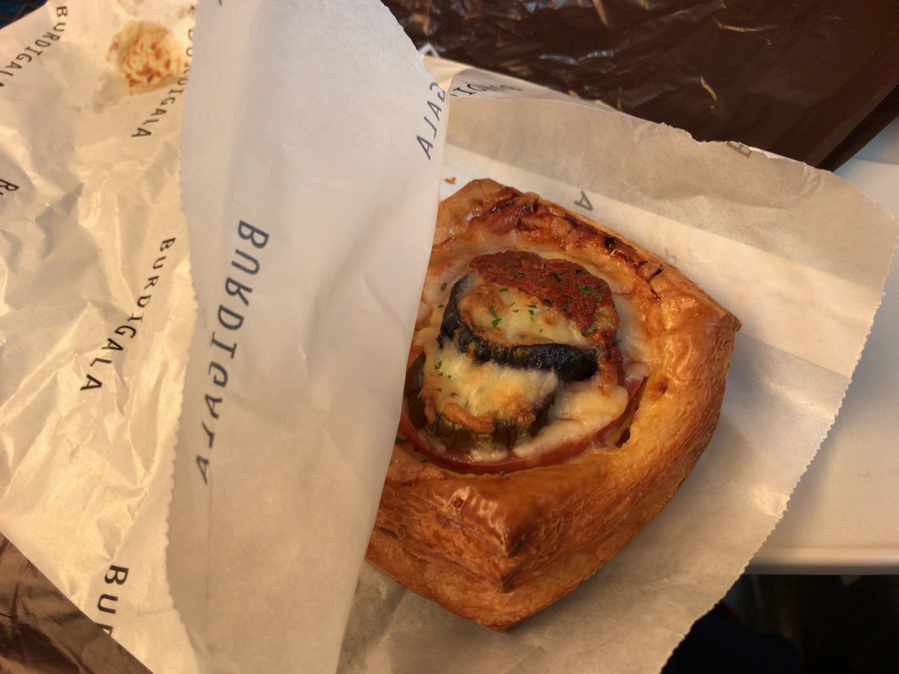 新幹線の中で小腹に入れようと、惣菜パンを選びました。