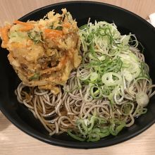 品川駅構内エキュートにある立ち食い蕎麦屋さん。いつも混んでいるので、狭い店内の場所を探してさっと食べる立ち食いスタイル。ここの売りはかき揚げで常に出来立てサクサクのかき揚げで出してくれる。蕎麦のボリュームも多く、香りはさほどないですが、普通でかなりの満腹になるかき揚げ蕎麦です。冷やしで¥500とまずまず安いです